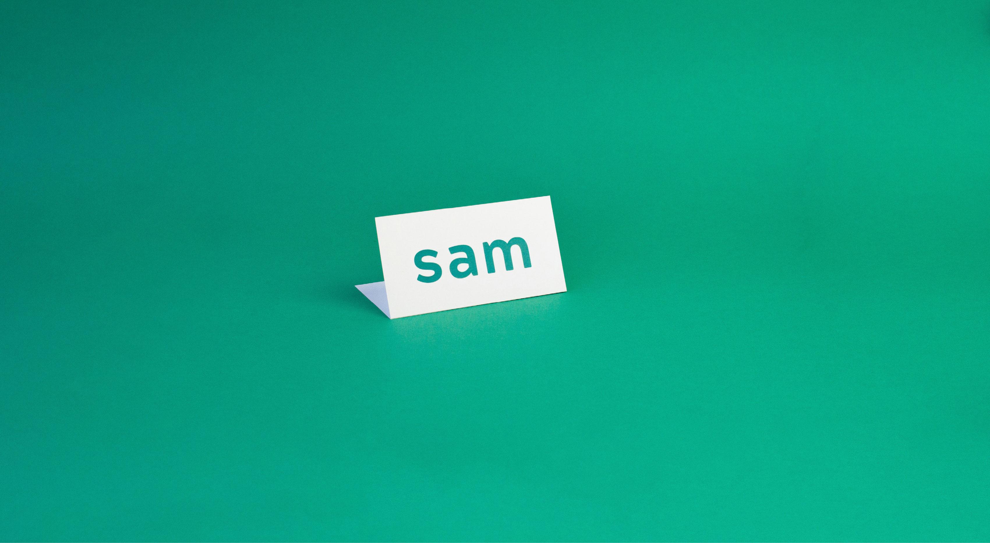 Het kader rond het logo lijkt op een naamkaartje op tafel. SAM zit mee aan tafel en versterkt sociale professionals, hun organisaties en het beleid. Dat visuele verhaal sloeg aan. De organisatie kreeg stilaan een gezicht, waardoor SAM eindelijk een gezamenlijk verhaal werd. Een nieuwe start waar iedereen behoefte aan had.