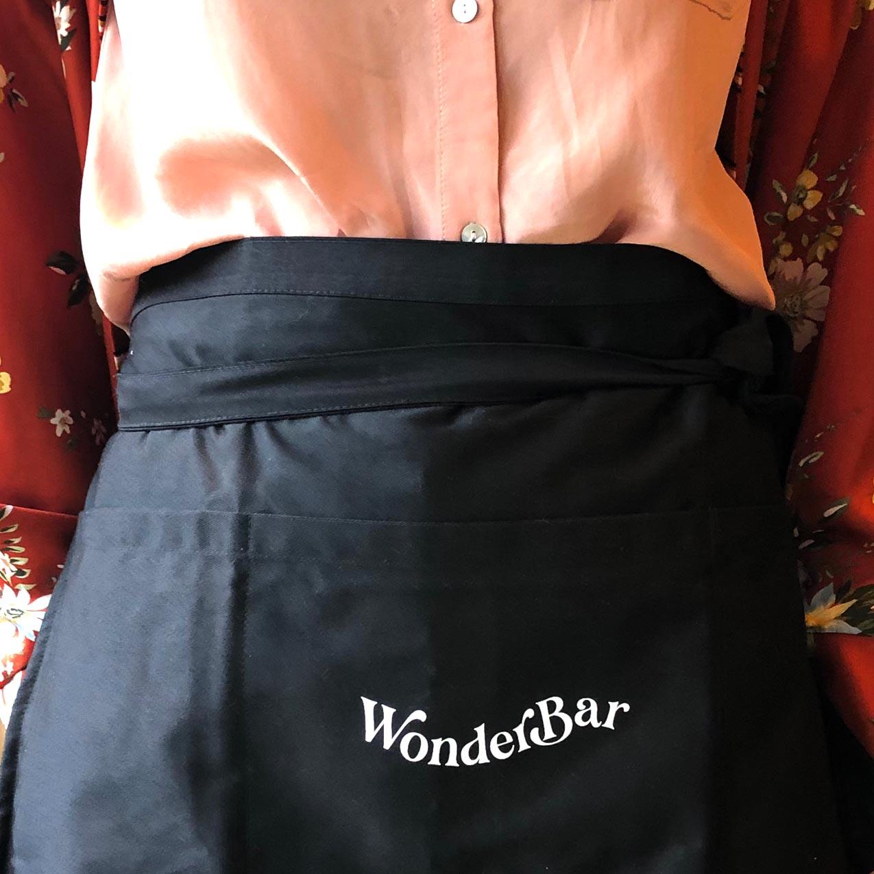 We doopten de bar ‘Wonderbar’. Voor het logo, de huisstijl en het interieur lieten we ons inspireren door verhalen zoals Alice in Wonderland en The Wizard of Oz: een knalgeel tapijt in combinatie met veel groen, weckpotten, rode appels, goud, passende tekeningen en een ouderwetse gezelligheid in een modern jasje. Dankzij het duidelijke concept konden we vlot en makkelijk beslissingen nemen. De storytelling is daarnaast heel dankbaar om te gebruiken in marketing, in de pers en voor leuke, ludieke en mooie communicatiecampagnes.
